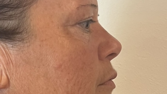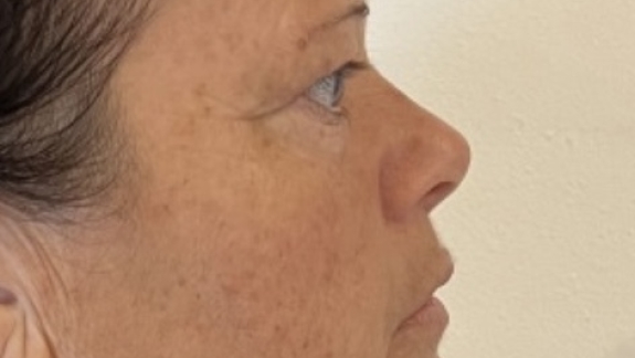 Alene botox kan give et løft af hele ansigtet. Her har kunden fået rynkereducerende behandling i panden, bekymringsrynken, kragetæer, mod nedadvendte mundvige samt nefertitisløft.